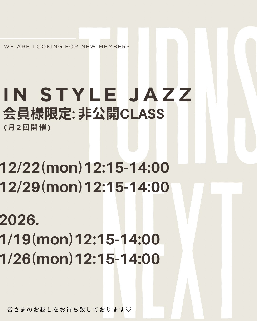 2026.1月のスケジュールも決定いたしました☺︎