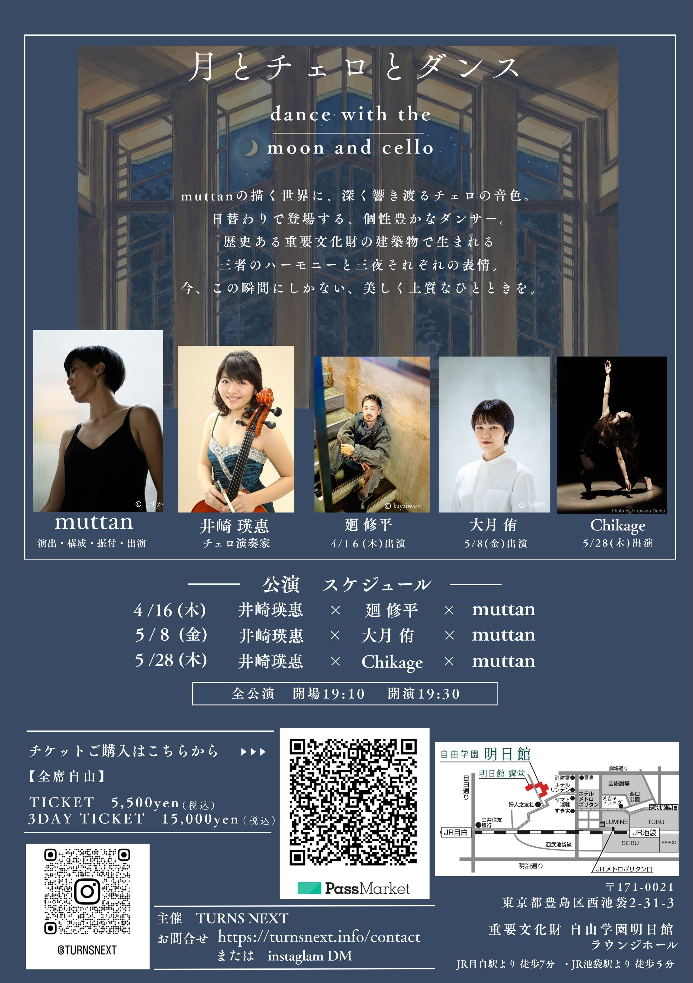 公演開催のお知らせ▶︎▶︎▶︎「 月とダンスとチェロ 」〜演出・構成・振付・出演/muttan〜